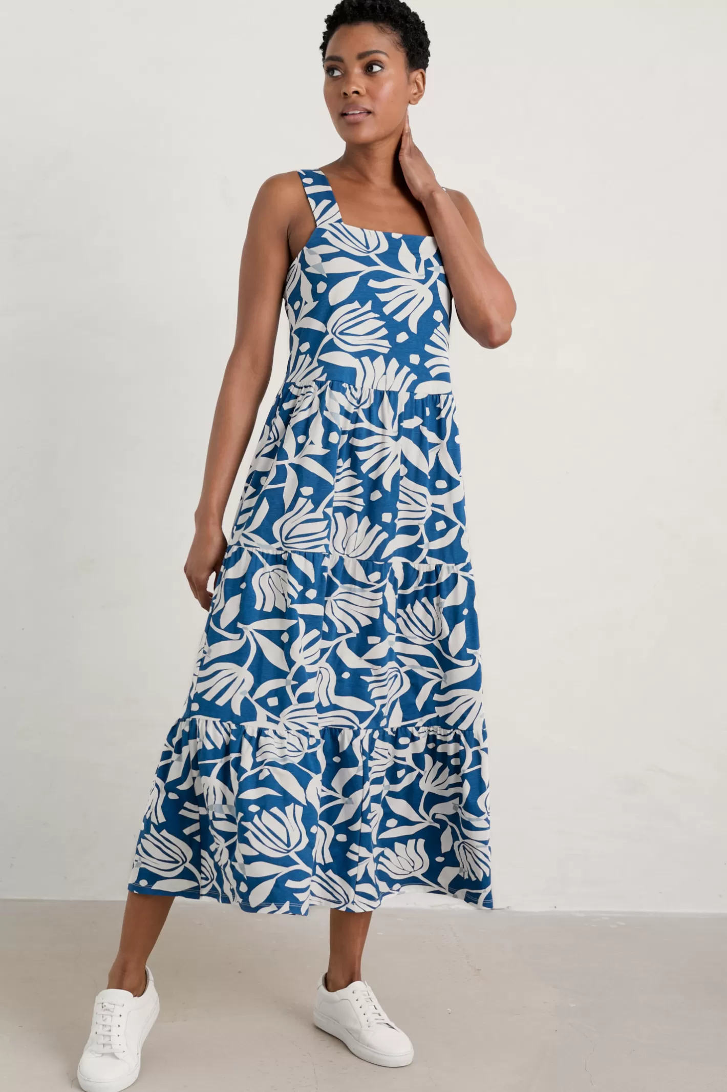 A New Summer Favourite To Take You From The Beach To The Bar All Season Long. Made From Soft Organic Cotton With A Touch Of Stretch, We’Ve Given The Deep Water Dress A Flattering Square Neck With Wide Straps. Elasticated Smocking On The Back Creates Extra Space For A Comfortable Fit, And Gathered Tiers In The Ankle-Length Skirt Give The Dress A Gentle, Floaty Movement.