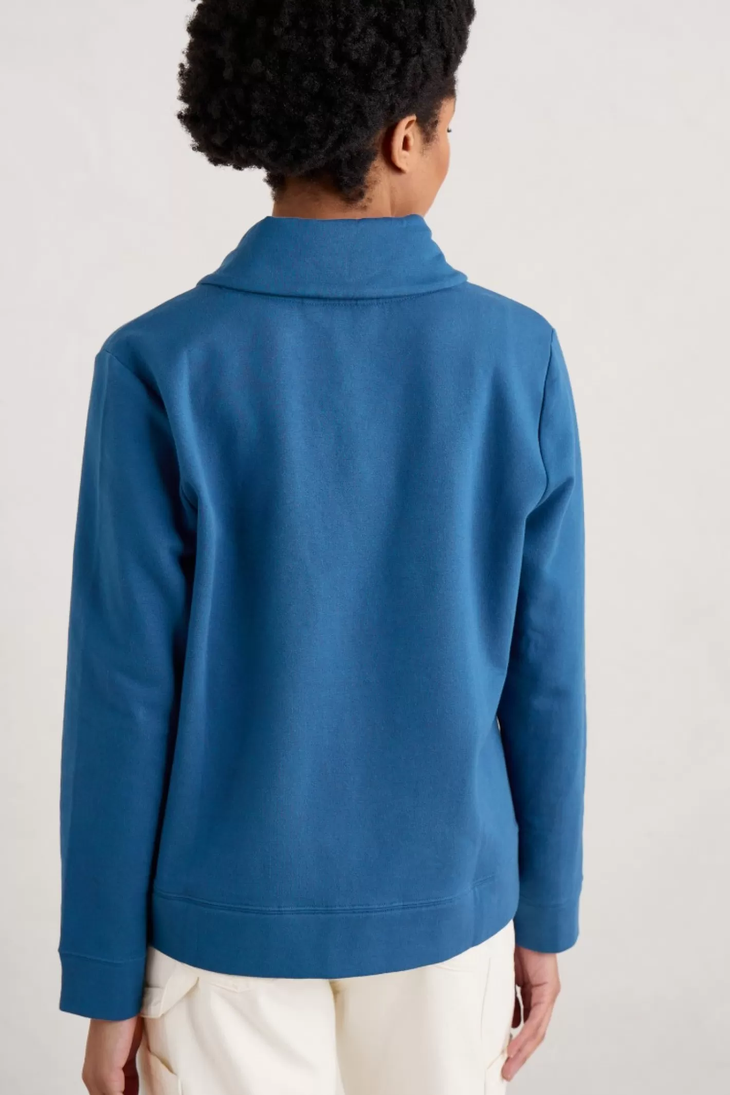 A Simple Sweatshirt With A Cosy Shawl Collar, Made From Soft Organic Cotton Brushback Jersey. The Top Stitch Patterns And Deep Cuffs And Hem Give It An Elevated Twist. Perfect For Stylish Warmth On Chilly Days.