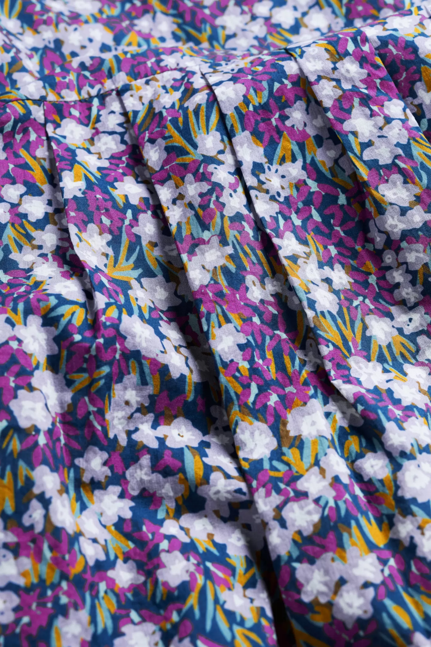 A Romantic Bibbed Shirt With Even Gathers For A Loose And Easy Shape. Airy Blouson Sleeves Have Button Cuffs, And The Handcrafted Print Has A Lovely Movement. We Love It Tucked In Or Worn Loose, Or To Add Interst Under Pinafores And Knitted Vests.