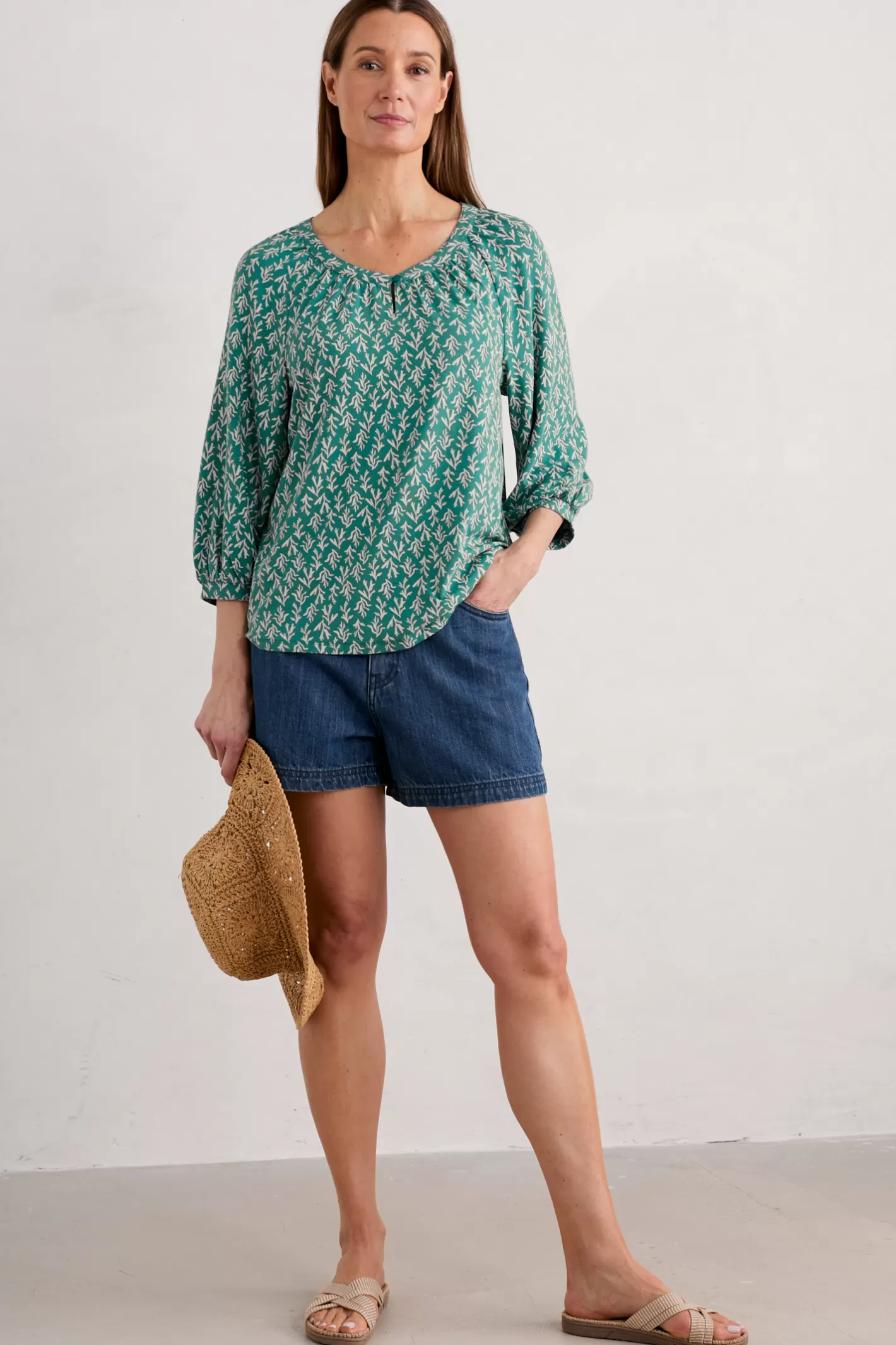 We’Ve Given This Top Feminine 3/4 Blouson Sleeves For An Airy Feel, As Well As Detailed Gathers At The Neck And A Swingy A-Line Fit. Crafted From A Soft Jersey Blend, It Has A Beautifully Soft Weight And Drape – Making It The Perfect Style For Everyday Ease.