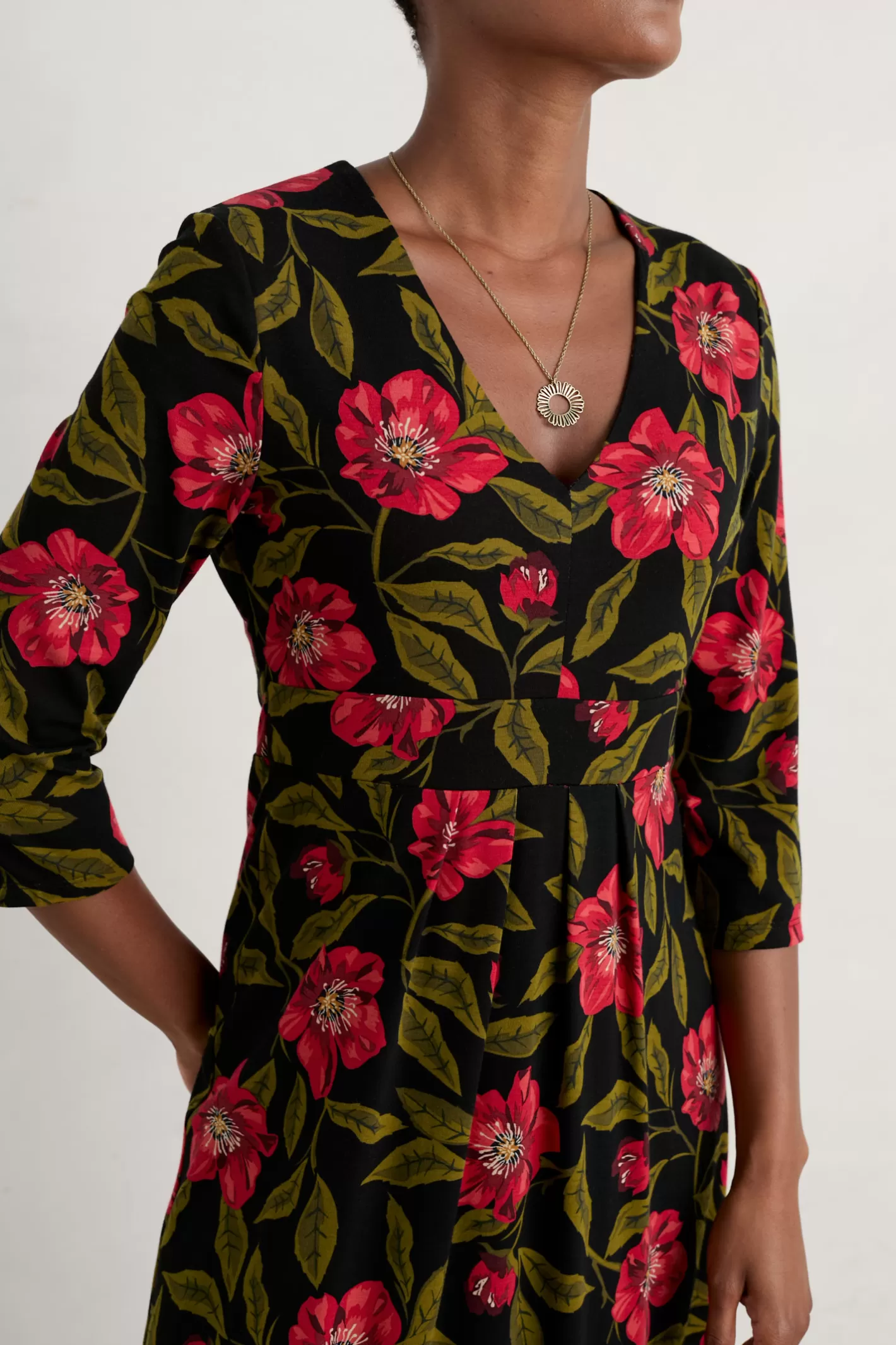 A Simple Dress With A Streamlined Shape And Contemporary V-Neck. Made From A Jersey Blend Of Bamboo-Derived Viscose And Organic Cotton, This Style Has Small Pleats Just Under The Bust To Give A Beautifully Skimming Fit.