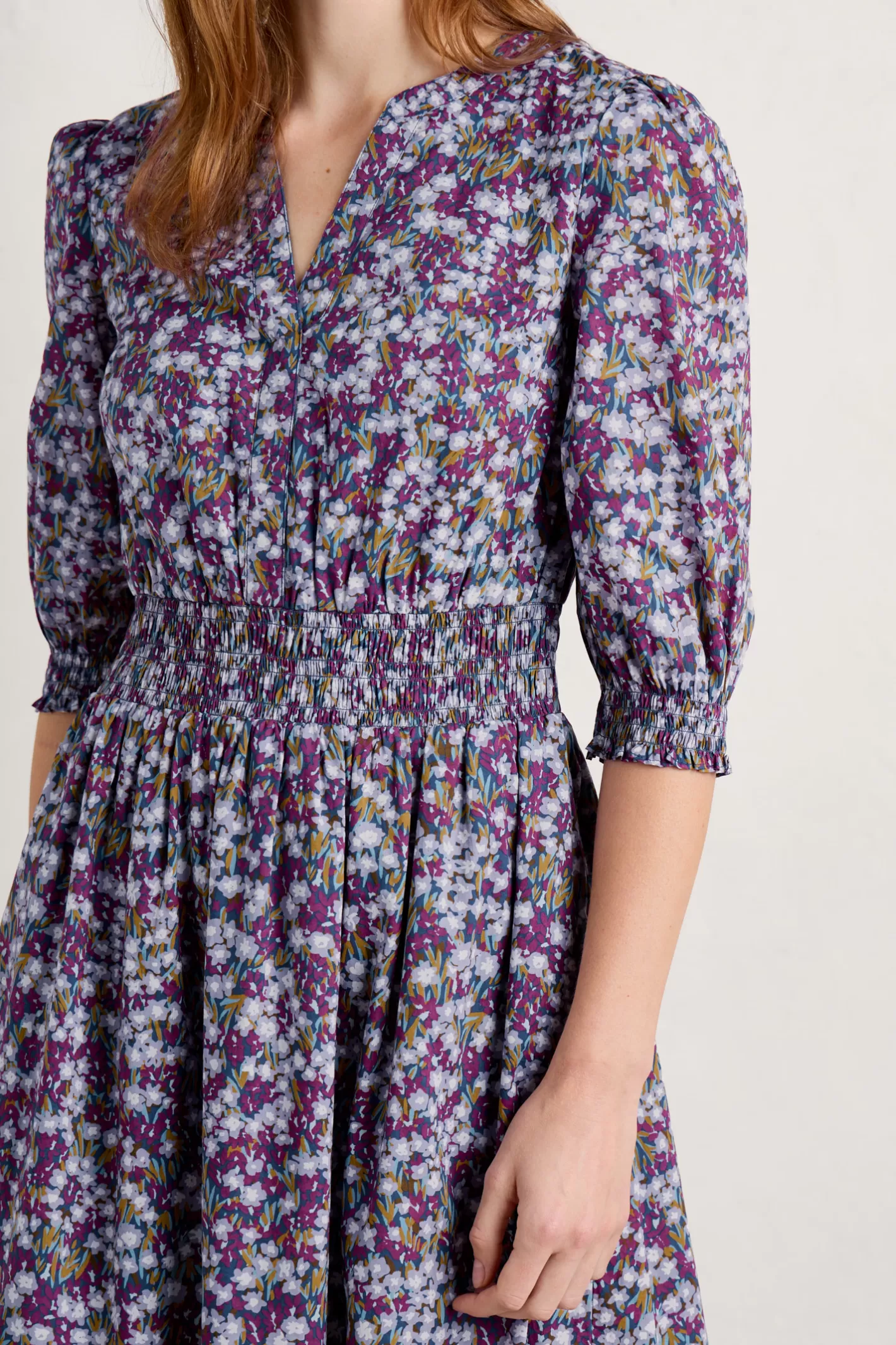 A Romantic Dress With A Soft Fullness In The Sleeves And Skirt, Giving An Elegant Swish To This Season’s Floral Prints. The Relaxed Bodice Has Gathers Into The Shirred Waistband, While The Notch Neckline Gives It A Contemporary Feel.
